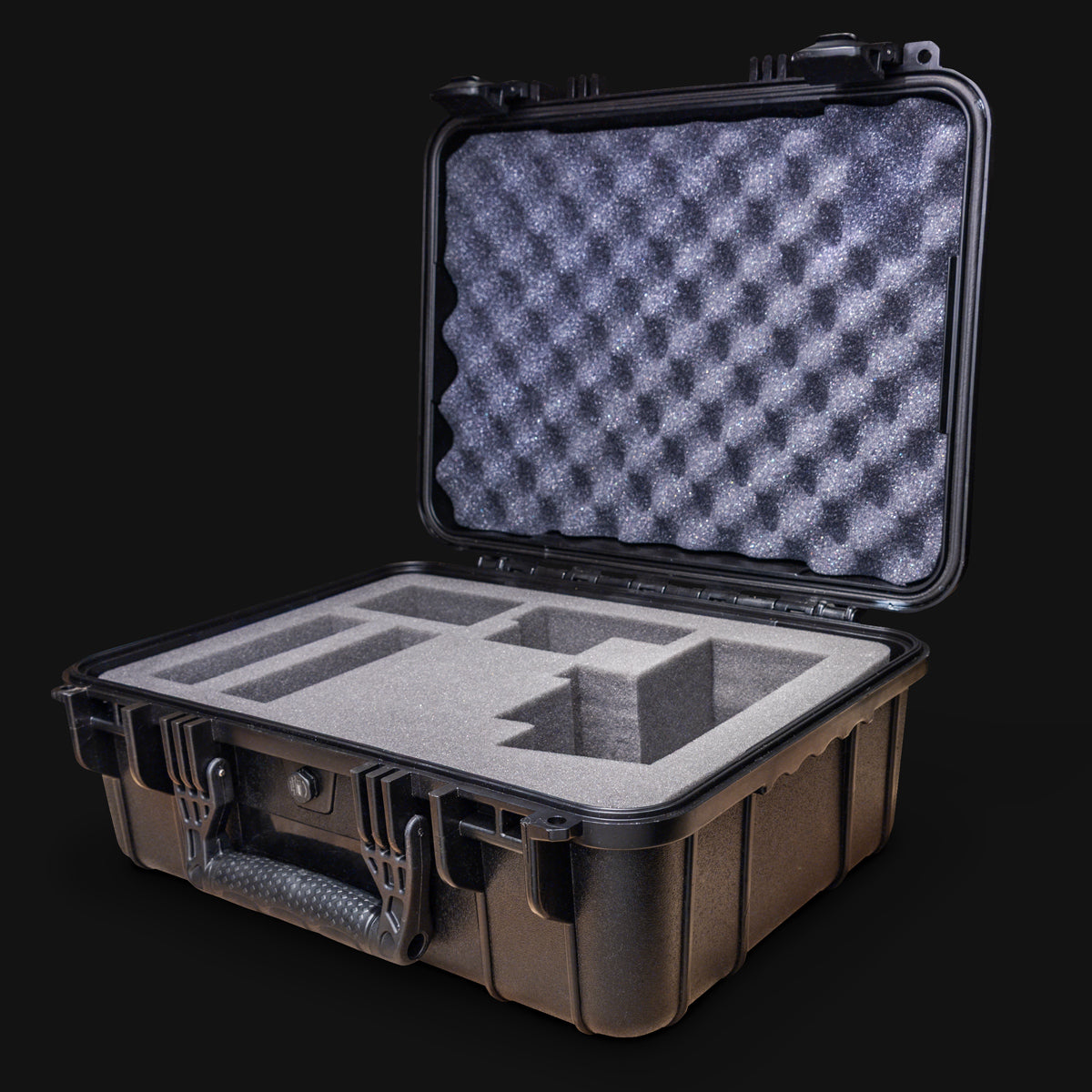 - A durable hard-shell case with custom foam inserts designed to handle the rigor of the road. Includes spaces for your radar, charging cables, and extra battery handles.